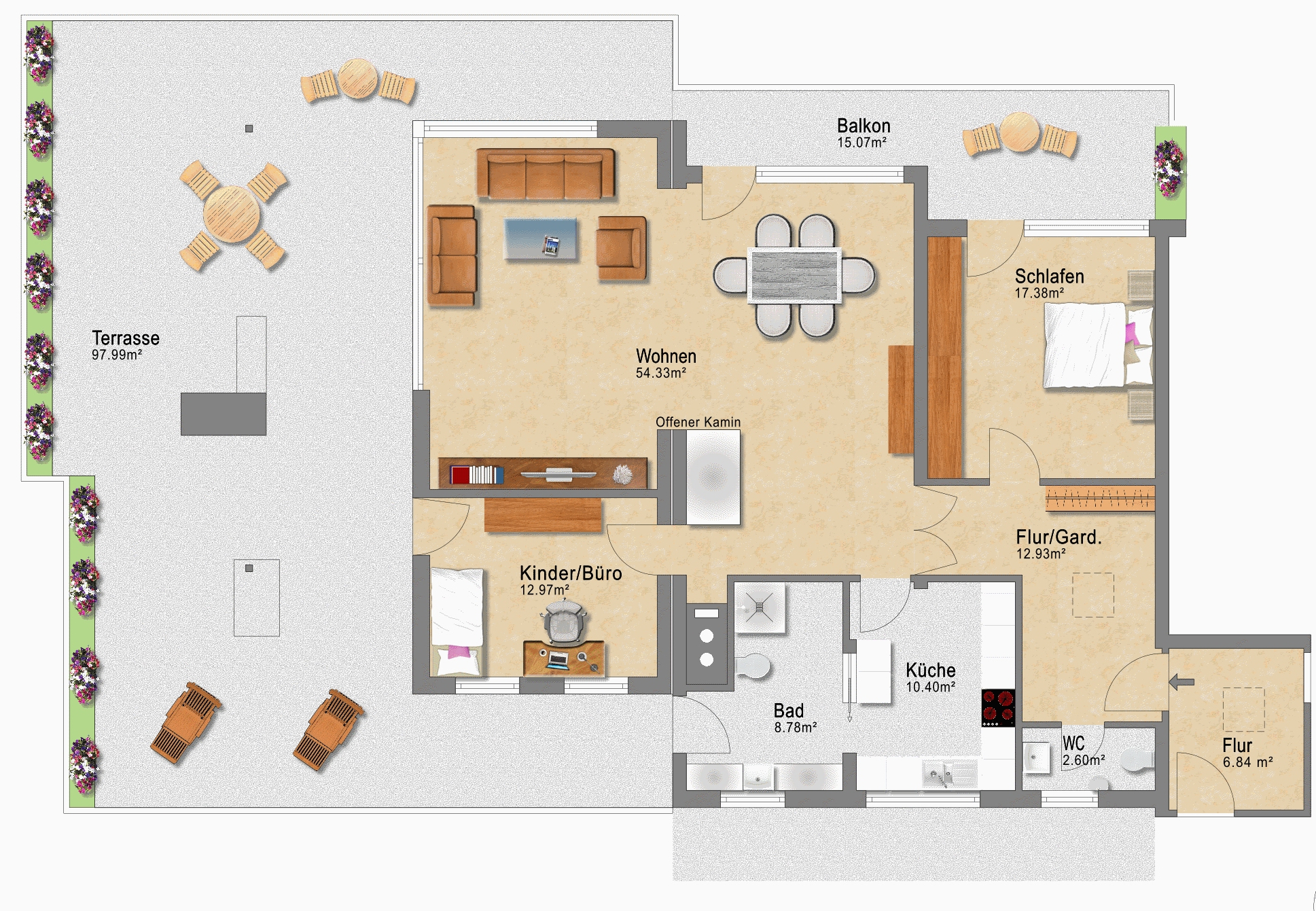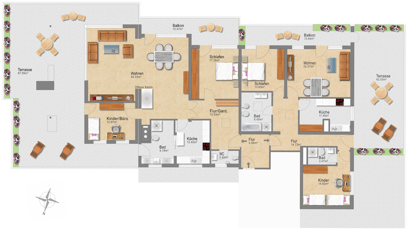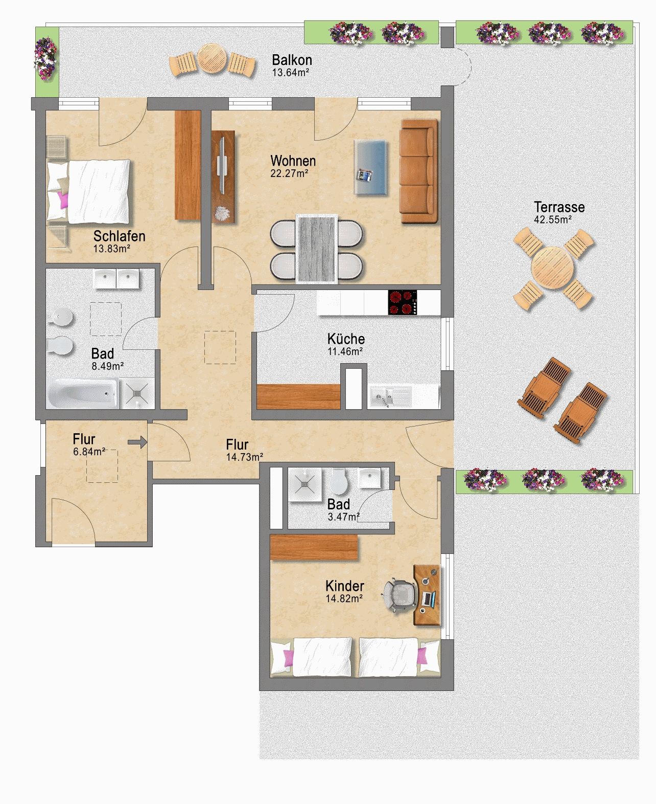 3-Zimmer-Wohnung (42.1), Gesamtwohnfläche 147,66 m²: